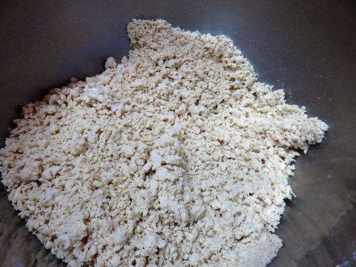 Larutkan garam dapur dan soda kue dalam air. Masukkan larutan ini dalam adukan tepung terigu kemudian nyalakan kembali mixer pada kecepatan tinggi (speed 3) selama 5 menit hingga adonan lembut kering.