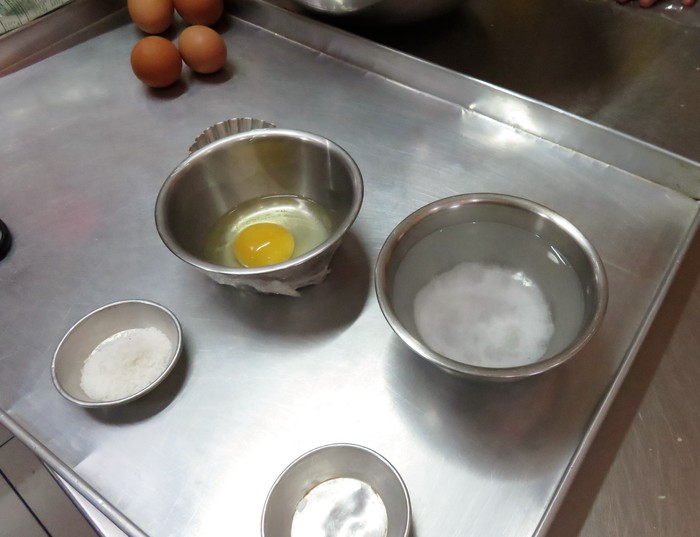 Jika akan membuat mie telur dakam bahan, campur 100 g telur dengan 280 g air dengan total jumlah tetap sama, 380 gram.