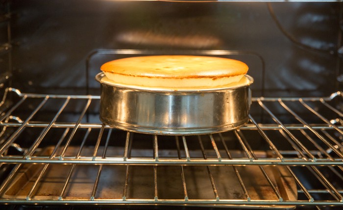 Panggang cake dengan suhu 180 derajat celcius hingga matang.