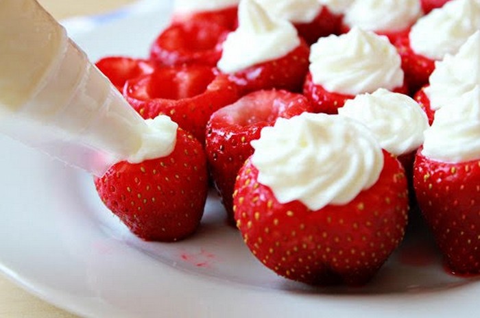 1 kg strawberry segar ukuran besar, 250 gram cream cheese, 4 sdm gula bubuk, 1 sdt ekstrak vanilla, dan 30 gram biskuit graham cracker. Kepingan biskuit bisa diganti cincangan almond jika suka.