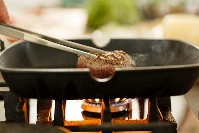 Saat memanggang steak dengan kompor gas, Anda tak perlu takut membolak-balikkan daging. Cara ini justru membuat tekstur daging lebih empuk dan mencegah daging terlalu kering karena terhindar dari panas berlebih.