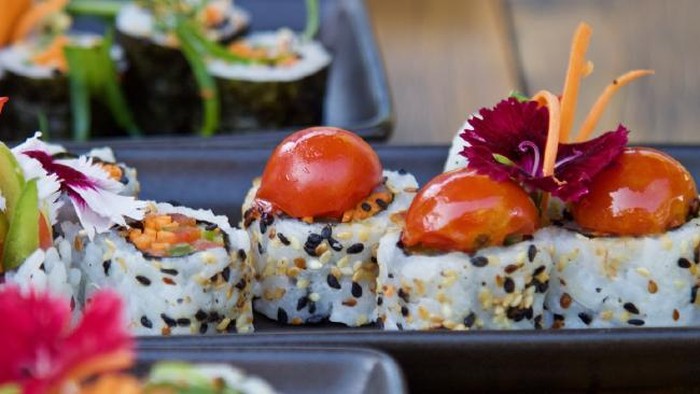 Sushi identik dengan ikan, bahkan sekarang banyak yang membuat isian dengan daging. Namun kafe vegan ini justru mengganti semua itu dan membuat sushi 100% berbahan tumbuhan.
