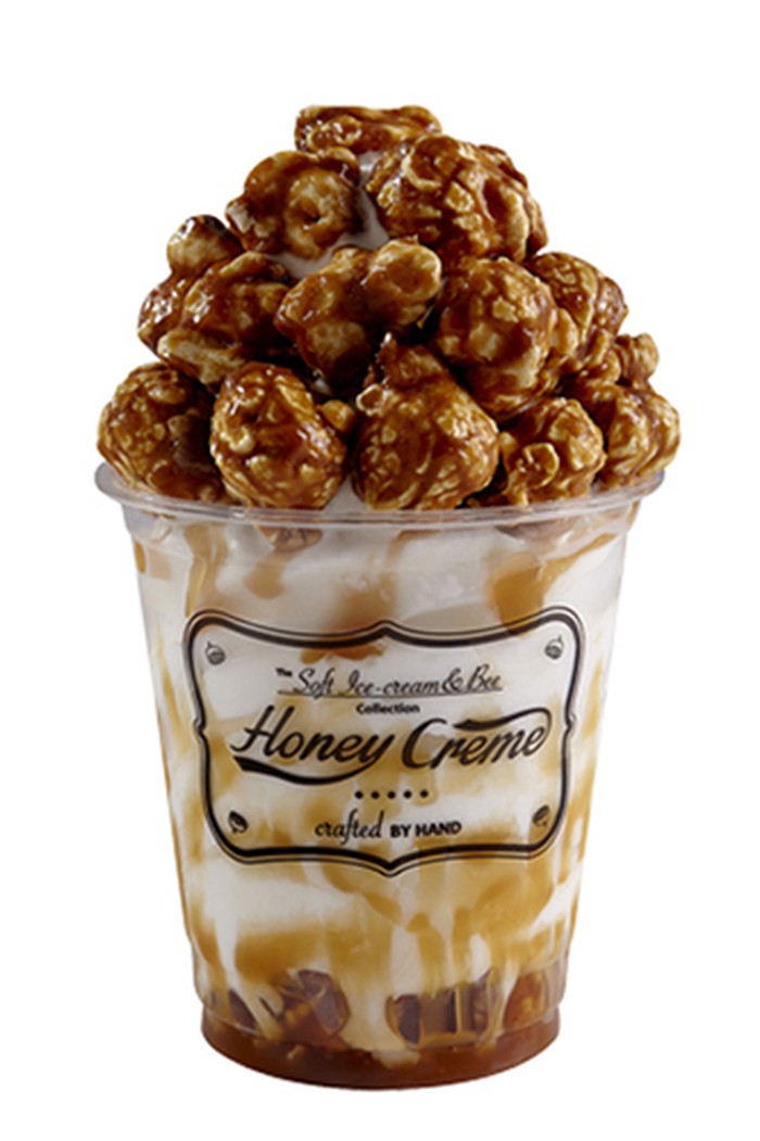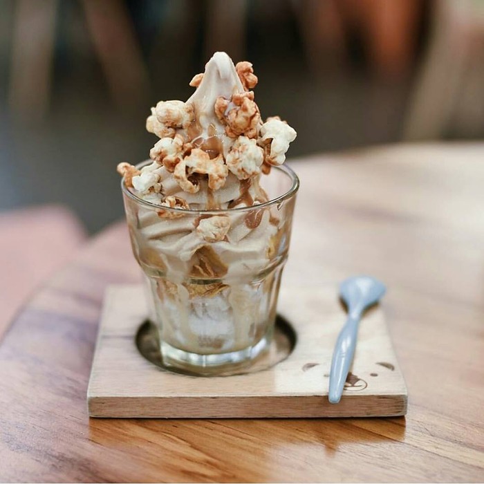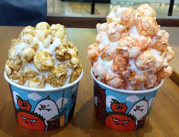 Pemakaian topping bisa menambah rasa enak es krim. Buah, lelehan cokelat hingga taburan biskuit termasuk topping populernya. Kini popcorn yang identik dengan makanan saat di bioskop, juga ikut ditaburkan ke permukaan es krim. Mau mencobanya? Datang saja ke gerai-gerai ini.