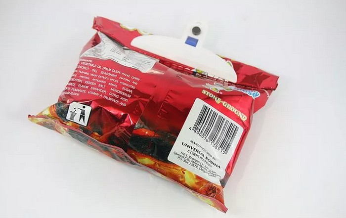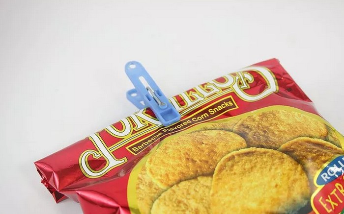 Sebelumnya, jangan lupa untuk mengeluarkan semua udara dari kantung keripik sisa sebelum menjepitnya.