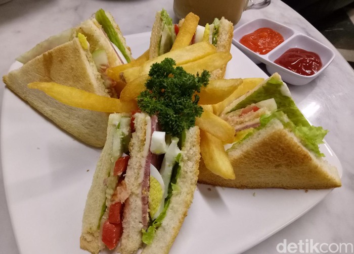 Racikan kopi hangat dan dingin cocok dinikmati bersama dengan club sandwich. Roti dengan isian smoked beef, daging ayam, telur goreng, tomat, lettuce dan potato chips jadi suguhan makan malam yang komplet dan juga mengenyangkan. Mau coba?