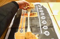 Saat memesan burger ini, pengunjung disediakan alas piring kertas yang bergambar penggaris dalam ukuran centimeter. Pengunjung dapat mengukur keelastisitas keju. Ukuran penggaris menuliskan angka 10 hingga 45 cm.