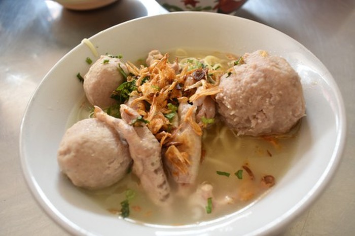Di sini Anda bisa memesan semangkuk bakso ceker dengan paduan kuah kaldu yang gurih. Kalau ingin lebih kenyang, Anda juga dapat mencicip mie yamien manis dan asin yang enak dipadu dengan ceker dan kerupuk pangsit. Mau coba?