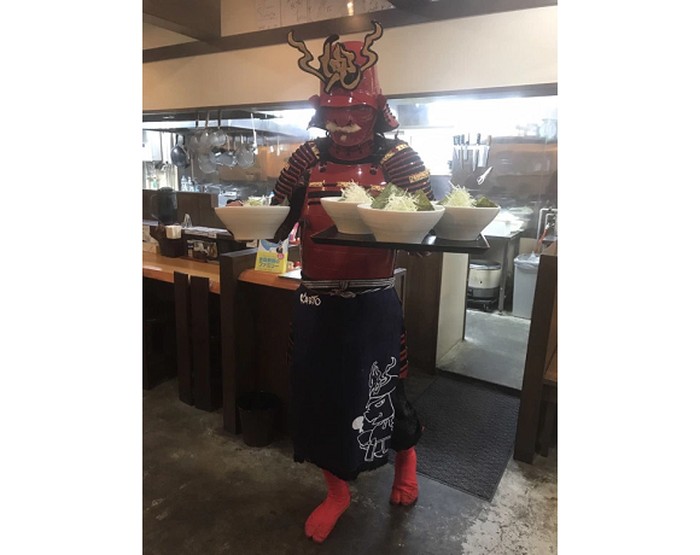 Dikutip dari Sora News 24 (23/6), pemilik restoran ramen bernama Ramen Kabuto ini adalah pencinta periode feudal Sengoku dalam sejarah Jepang. Iapun rela memakai kostum samurai saat meracik pesanan pelanggannya.