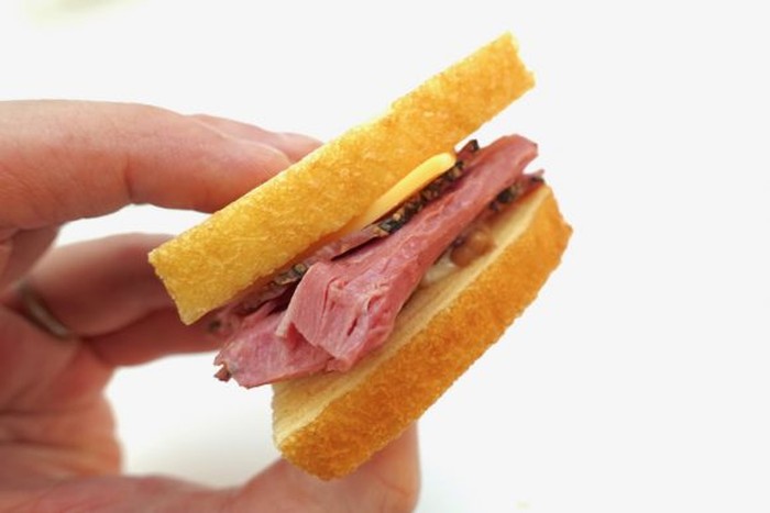 Paduan rasa gurih daging dengan manisnya cake mungkin terdengar aneh. Tetapi resto Nenrinya di Jepang menghadirkannya. Mereka mengganti roti putih, gandum dan rye untuk sandwich dengan lembaran cake.