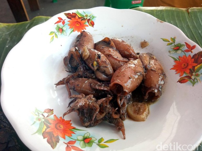 Cumi ukuran kecil yang dibaluri bumbu kehitaman cukup banyak penggemarnya. Tak lain karena kekenyalan cumi berpadu dengan bumbu gurih. Kalau mau menikmatinya, datang saja ke sini.
