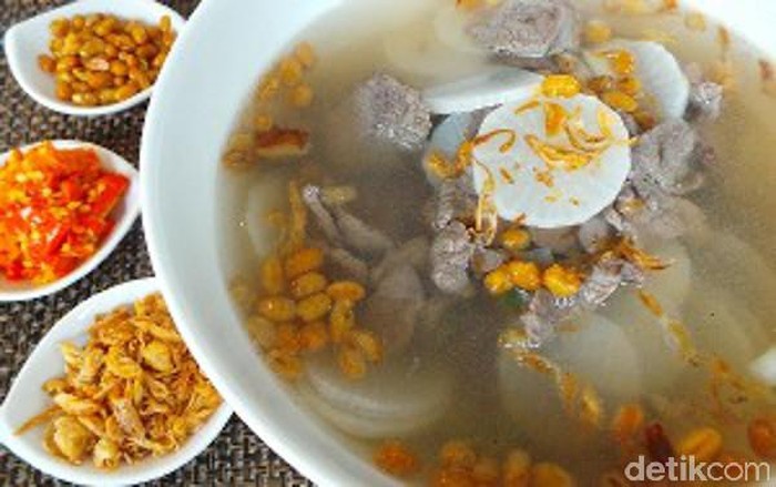 Masukkan lobak saat soto sudah dibumbui dan jangan lupa kedelai goreng plus sambal rawit jika ingin lebih komplet rasanya. Nasi putih dan kerupuk jadi jodohnya yang mantap.