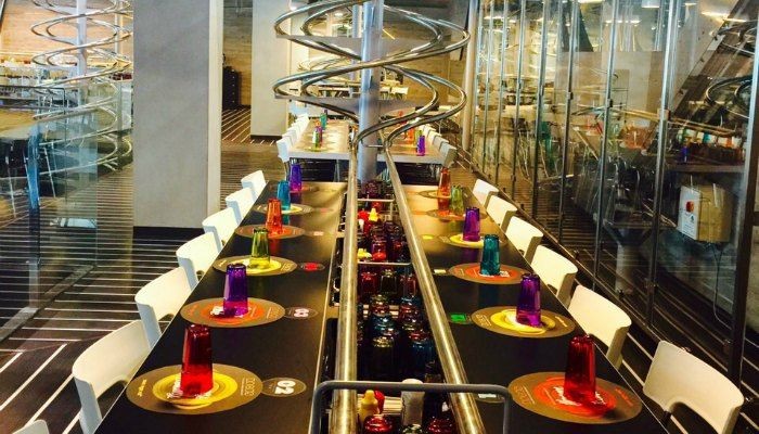 Jangan kaget jika bagian dalam restoran ini terlihat berantakan karena banyak besi melintang. Karena besi-besi ini memiliki fungsi untuk mengantarkan makanan.