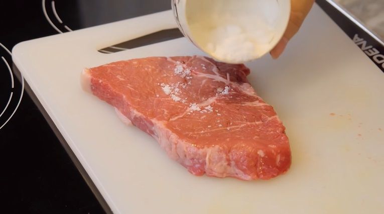 Benar saja, ia membuat sedikit kekeliruan saat memasak daging steak seharga Rp 500 ribu itu. Karena ketika daging dibelah masih mentah, ditandai dengan warnanya yang terlalu merah. Jadi, ia kembali memanggangnya di atas wajan.
