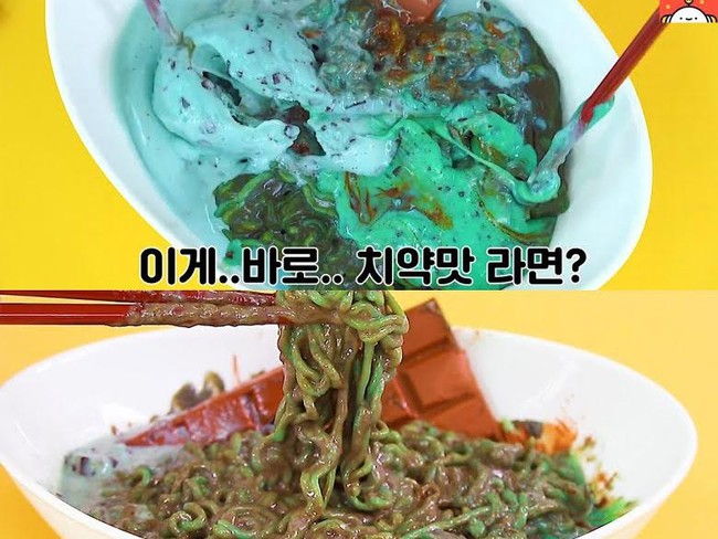 Ada 3 makanan yang dikreasikan dengan rasa mint choco. Mulai dari ayam goreng hingga ramyeon yang unik.