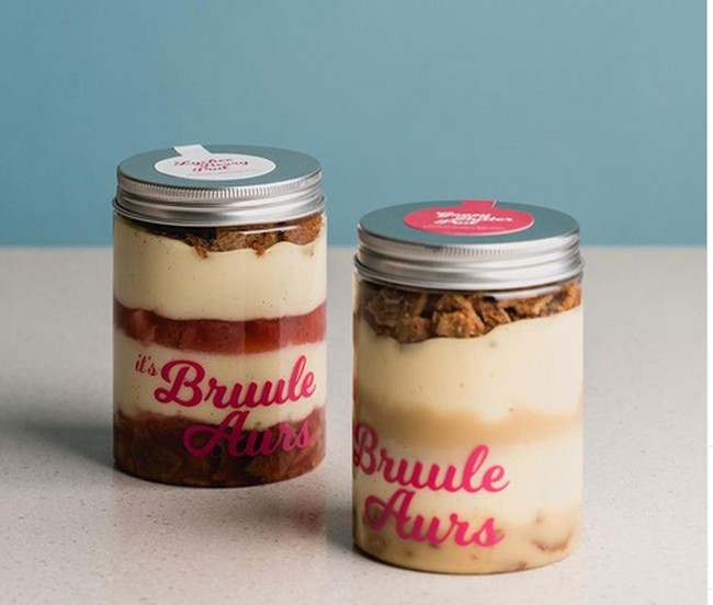 Bruule berkolaborasi dengan Aur's Cakery mengeluarkan produk baru berupa jar cake. Ada dua varian rasa cake manis yang ditawarkan lewat brand It's Bruule Aurs yakni Gooey Butter Pod dan Lychee Berry Pod.