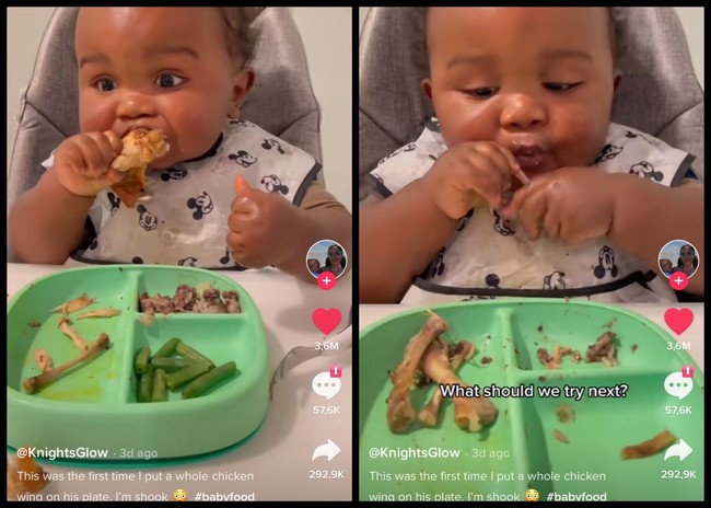 "Anak saya menghabiskan chicken wings ini lebih baik dari pada saya," kata Knight. Di keterangan video ia juga bilang kalau ini kali pertama dirinya memberi sang anak chicken wings utuh. "Saya terkejut," katanya.