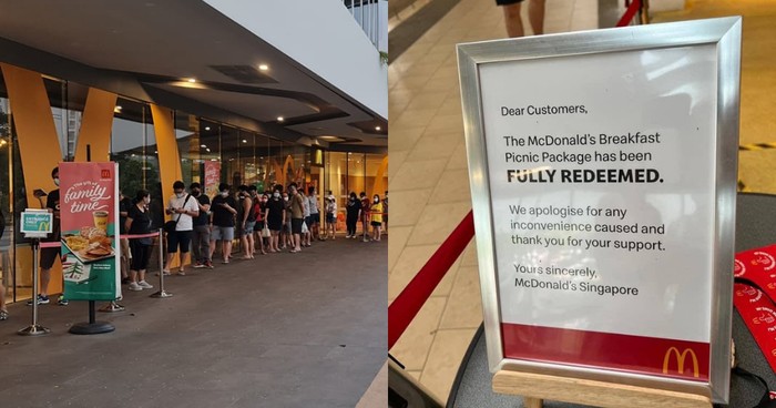 Pihak McD pun memajang tulisan yang berisi permohonan maaf karena stok McDonald's Breakfast Picnic Package sudah habis ditukar. "Kami minta maaf atas ketidaknyamanan yang ditimbulkan dan terima kasih atas dukungannya," tulis McD Singapura.