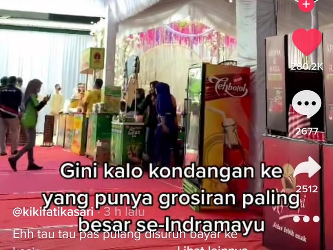 "Gini kalo Kondangan ke yang punya grosiran Paling besar se-Indramayu. Kondangan= jajan gratis. Berasa lagi jajan di pameran," kata Kiki.