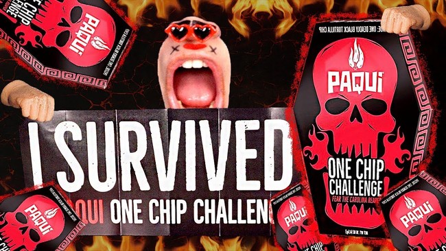 Seperti tantangan One Chip. Tantangan ini mengajak orang-orang untuk makan keripik kentang super pedas, dengan tambahan cabe Carolina Reaper dan Scorpion Peppers. Dua jenis cabe paling pedas di dunia.