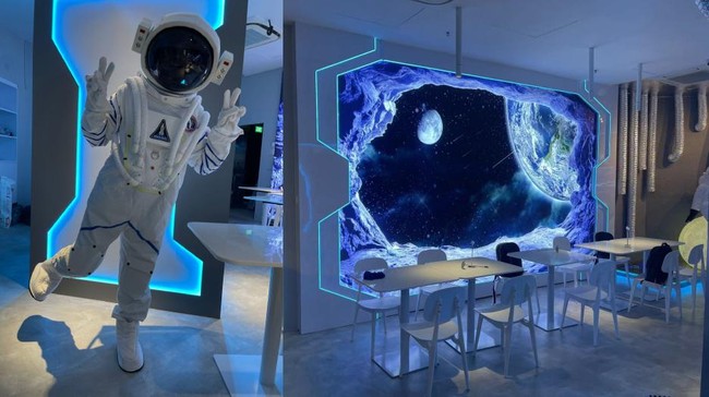 Tema luar angkasa sering dijadikan inspirasi untuk interior kafe dan restoran modern. Hiasannya yang unik dan tampilannya yang penuh warna, tentunya membuat banyak pengunjung semakin tertarik untuk datang.