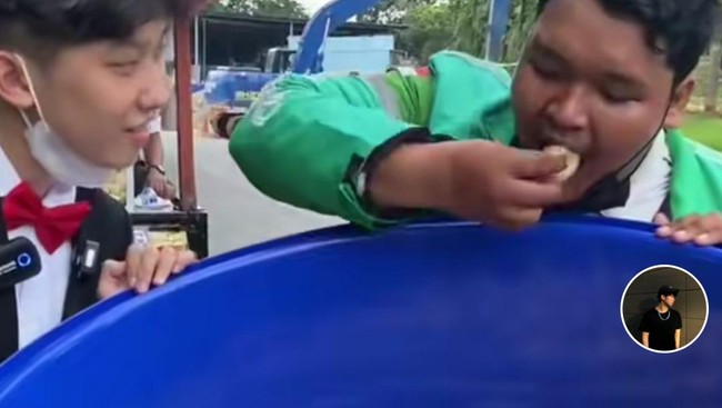 "Ini TikTok ya? Berani dong, saya bisa makan semua," kata sang driver ojol.