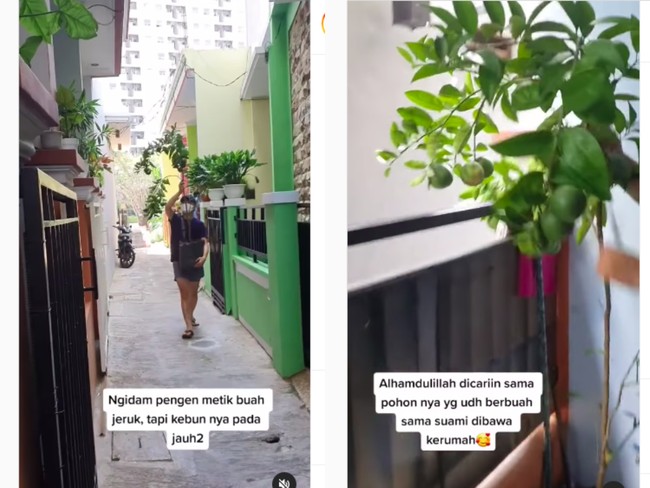 Ngidam ingin petik buah jeruk langsung dari pohonnya, wanita ini dapat kejutan tak terduga dari suami. Ia dibawakan pohon jeruk berbuah satu pot.