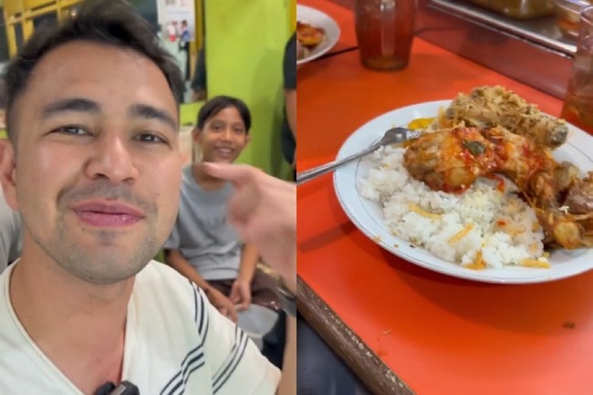 Raffi juga terlihat santai di warteg tersebut. Ia juga memesan satu porsi nasi dengan lauk yang banyak. Ada ayam goreng tepung, ayam balado, dan beberapa tumisan.
