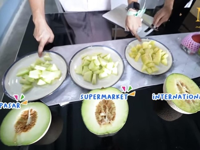 Melon mahal itu lalu dibawanya pulang ke Indonesia dan dibandingkan dengan melon lokal yang dibeli dari pasar tradisional dan supermarket. Dua melon lokal itu dibanderol harga Rp 10.000 dan Rp 31.000.