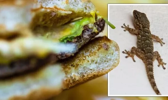 Saat sedang melahap burger itu, wanita tersebut merasakan ada sesuatu yang aneh. "Saya membukanya (roti burger) dan menemukan ada kadal terjepit dengan isi perutnya yang menggantung," kata wanita yang identitasnya anonim ini.