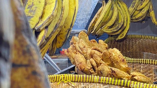 Pisang goreng ini dijajakan Fajar (42) di kios mungil. Fajar menggunakan pisang tanduk Sukabumi sebagai bahan utamanya. Ukurannya besar, bahkan bisa dibilang jumbo!