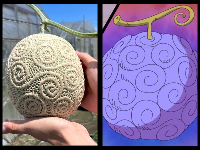 Melon di Jepang ini istimewa, bukan karena harganya, melainkan bentuknya yang unik. Kulitnya menampilkan guratan bermotif Devil Fruit yang hadir dalam serial manga One Piece.