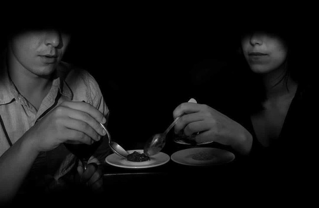 Konsep makanan ini disebut aneh, karena tak hanya ruangannya saja yang gelap gulita. Para pelayan juga melayani tamu dalam kegelapan, sehingga harus berkomunikasi dengan pengunjung.