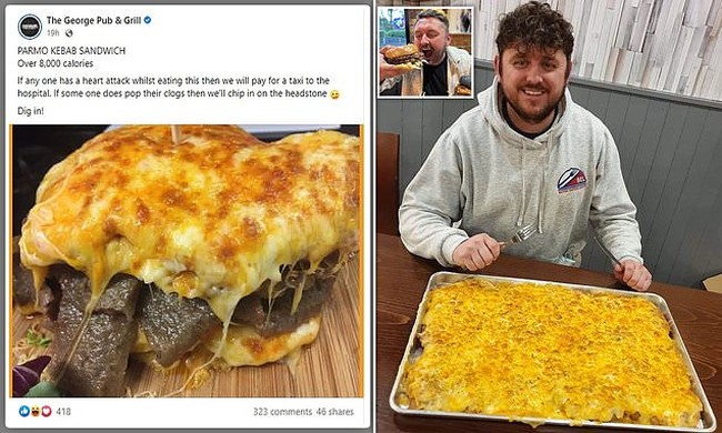 Restoran ini menantang pelanggannya untuk makan kebab senilai 8.000 kalori. Bahkan, restoran mengaku akan menjamin biaya pengobatan jika ternyata penantang alami penyakit.