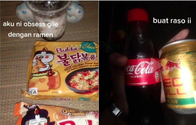 Dalam video TikToknya, ia memperlihatkan setiap kali ia menyeduh ramen instan. Tak hanya makanan saja, ia pun selalu minum minuman berenergi dan minuman bersoda setiap hari.