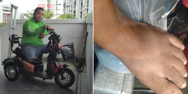 Mitra GrabFood di Singapura itu harus menggunakan tongkat dan motor roda tiga dalam operasionalnya karena ia tak punya dua kaki. Meski begitu, kegigihannya dalam bekerja sempat menyedot perhatian publik negeri Singa.