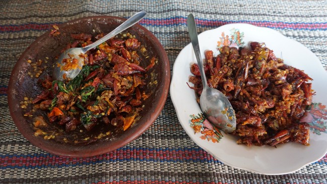 Di tangan Fatmawati, belalang jadi santapan nikmat berupa belalang sambal kemangi. Rasanya renyah gurih dengan paduan sambal kemangi yang harum menyegarkan. Cobain yuk!