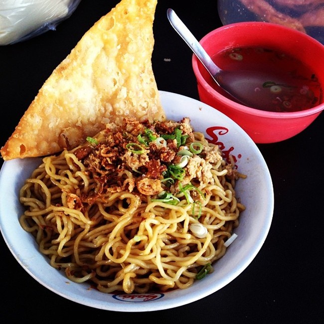 Selain bakmi ayam khas Jawa, bakmi Bangka juga populer. Toppingnya ayam berbumbu kecap dengan sawi dan tauge. Disiram kaldu hangat, sedap!