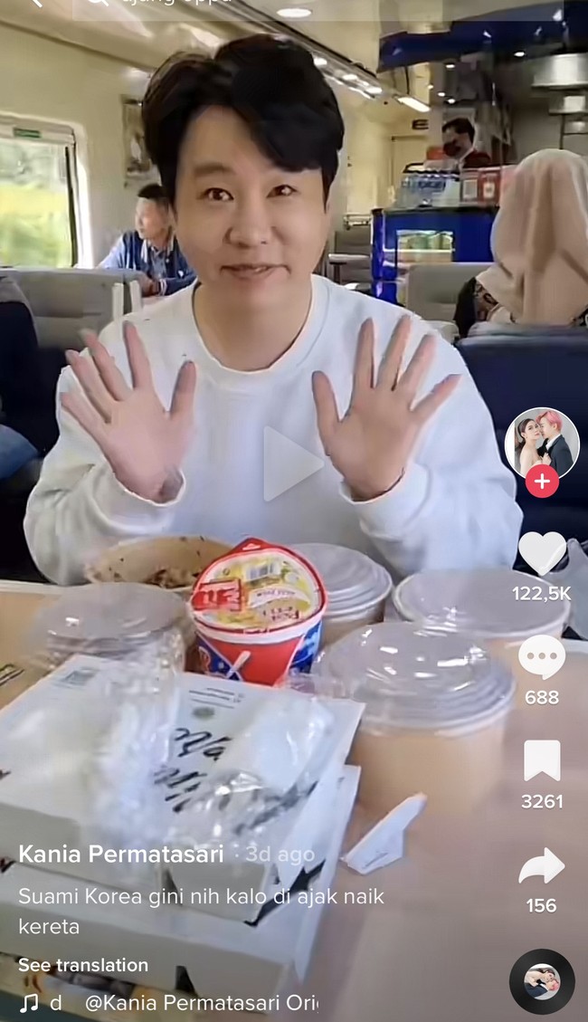 Orang Korea bernama Ujung Oppa ini diketahui baru pertama kali naik kereta di Indonesia untuk perjalanan jarak jauh. Melalui unggahan di TikTok @Kania_permatasi (03/01), setelah masuk ke dalam gerbong dan menemukan kursi, Ujung Oppa pun langsung bertanya ke istrinya kapan ia bisa makan dan mencicipi makanan di kereta itu.