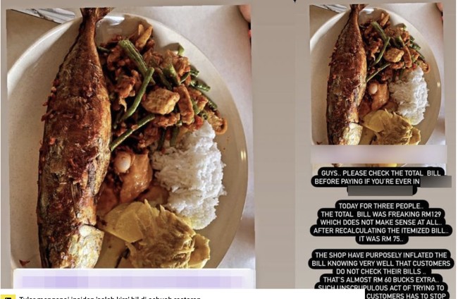 Diketahui pelanggan tersebut mengunjungi sebuah restoran di Kuala Lumpur yang terkenal dengan menu nasi, aneka lauk, dan sayur-sayurannya. Dalam unggahannya, tampak pesanannya berupa nasi dengan lauk ikan dan sayuran. Ia datang ke restoran ini bersama temannya sehingga mereka membayar makanan untuk tiga orang.
