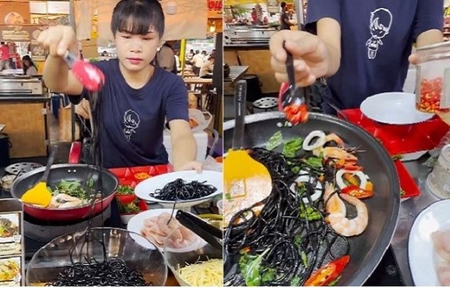 Kreasi mie hitam ini ditawarkan oleh seorang penjual wanita di lapak kaki lima yang ada di Thailand. Videonya diunggah oleh akun @ourcollecti0n dan langsung viral di media sosial, sudah ditonton lebih dari 5 juta kali.