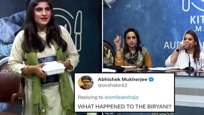 Namun, yang membuat para juri bingung adalah wanita itu membawa nasi biryani dalam kotak makan berwarna putih. Seperti makanan yang dibungkus dari restoran atau tempat makan.