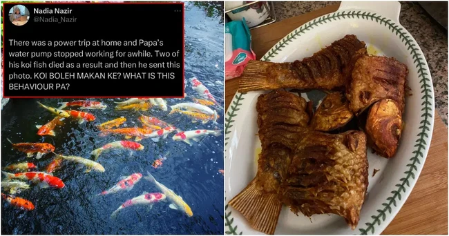 Dilansir dari World of Buzz (04/03), kisah ini berawal dari cuitan pengguna Twitter asal Malaysia bernama Nadia. Ia menceritakan kisah sang ayah yang terpaksa menggoreng ikan koi peliharaannya di rumah karena sedang mati lampu.