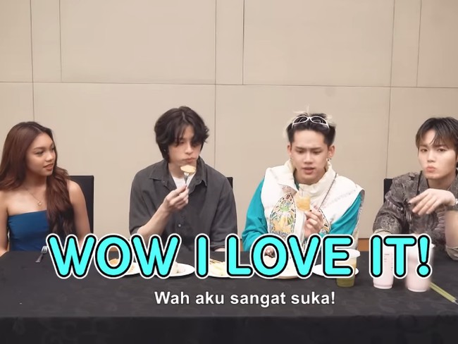 Setelah mengenalkan nama camilan Indonesia yang disajikan oleh Naura Ayu, member Treasure yang terdiri dari Junghwan, Hyunsuk, dan Doyoung ini langsung mencicipi aneka camilan tersebut. Pertama kali yang dicicipi adalah pastel.