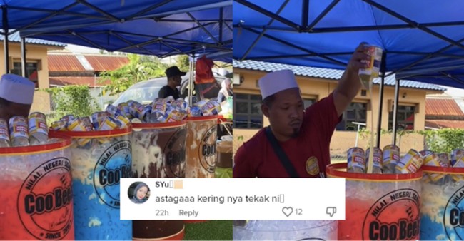 Warung yang menjual minuman manis di bazar Ramadan ini mencuri perhatian. Pasalnya penjual menambahkan banyak susu kental manis ke minumannya.