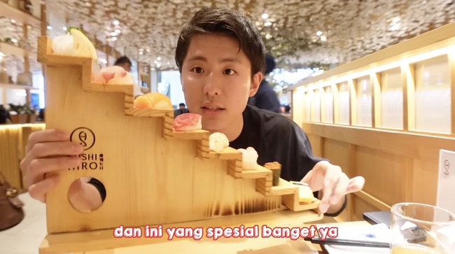 YouTuber Jepang ini mampir makan di restoran sushi terkenal di Indonesia. Ia memesan beberapa menu dan memberikan pendapatnya soal cita rasa hingga perbandingan sushi di sini dan di negara asalnya.