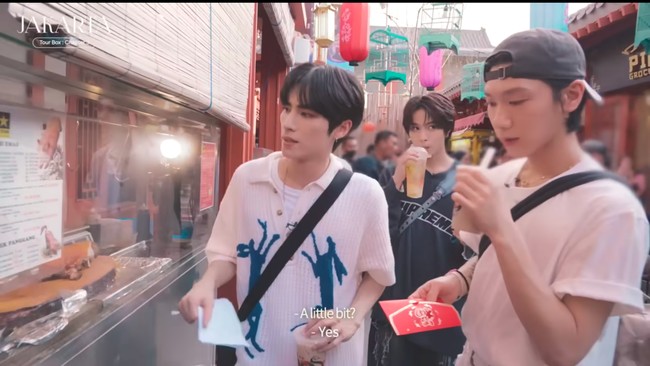 "Apa kabar? Saya ingin pesan milk tea, saya juga pengen pesan Nu Cha dan Chinese Lantern Soda. Jadi ada tiga milk tea, dan satu soda. Totalnya Rp 145 ribu," ungkap Ten yang dibantu oleh Hendery untuk membeli jajanan di sini.