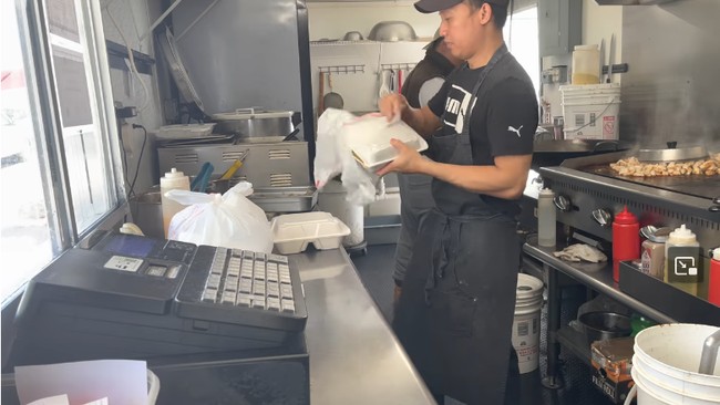 Nama food truck-nya adalah Kenzi Hibachi Express. Food truck yang digunakan oleh sang pria untuk berjualan memiliki ukuran yang besar dengan peralatan memasak yang lengkap. Mulai dari cooler, freezer hingga kompor.