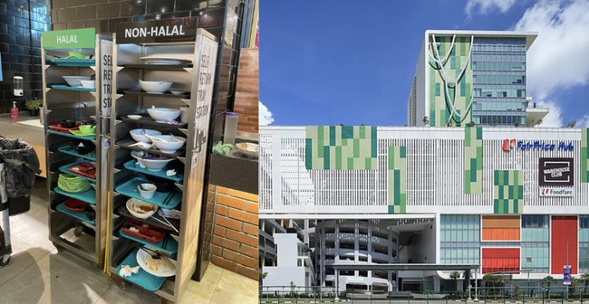 Diketahui lokasi kejadian ada di food court pusat belanja FairPrice Hub di dekat stasiun MRT Joo Koon, Singapura. Untuk alat makan menu halal berwarna hijau terang, sementara nonhalal warna putih.