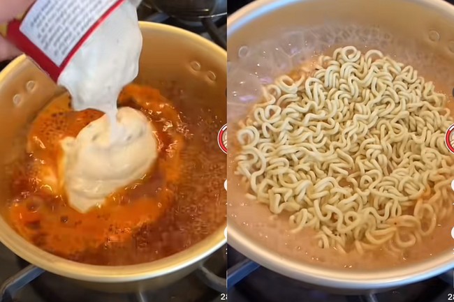 "Saat mencoba campuran keduanya, oh ya ini rasanya akan enak. Ini sangat mudah," ujar TikToker itu sambil menunjukkan racikan mie instan miliknya.
