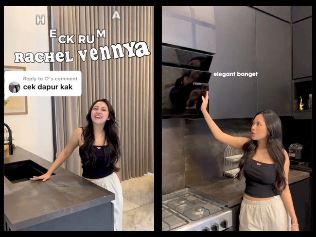 Rachel Vennya memamerkan tampilan dapur baru di rumahnya. Dapur serba hitam itu tampak dilengkapi peralatan canggih dan kabinet-kabinet fungsional.